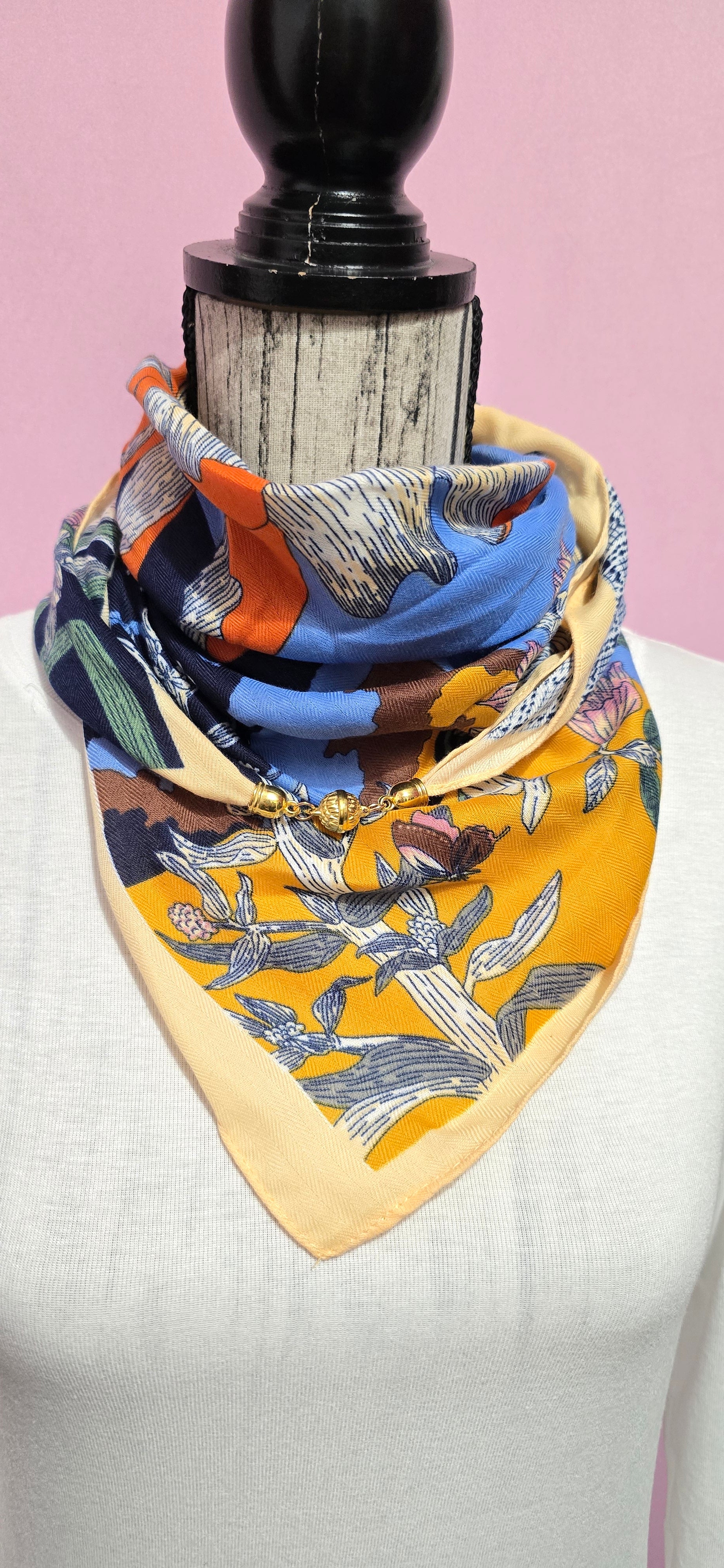 Elegante fazzoletto da collo con ciondolo calamitato, perfetto per aggiungere un tocco di stile al tuo look. Il design lo rende versatile e sofisticato, adatto sia a outfit casual che più formali. La chiusura magnetica garantisce praticità e sicurezza, permettendoti di indossarlo senza preoccupazioni. Un accessorio must-have per chi ama i dettagli ricercati e le stampe caratteristiche. Ideale per completare qualsiasi abbinamento con eleganza e personalità.