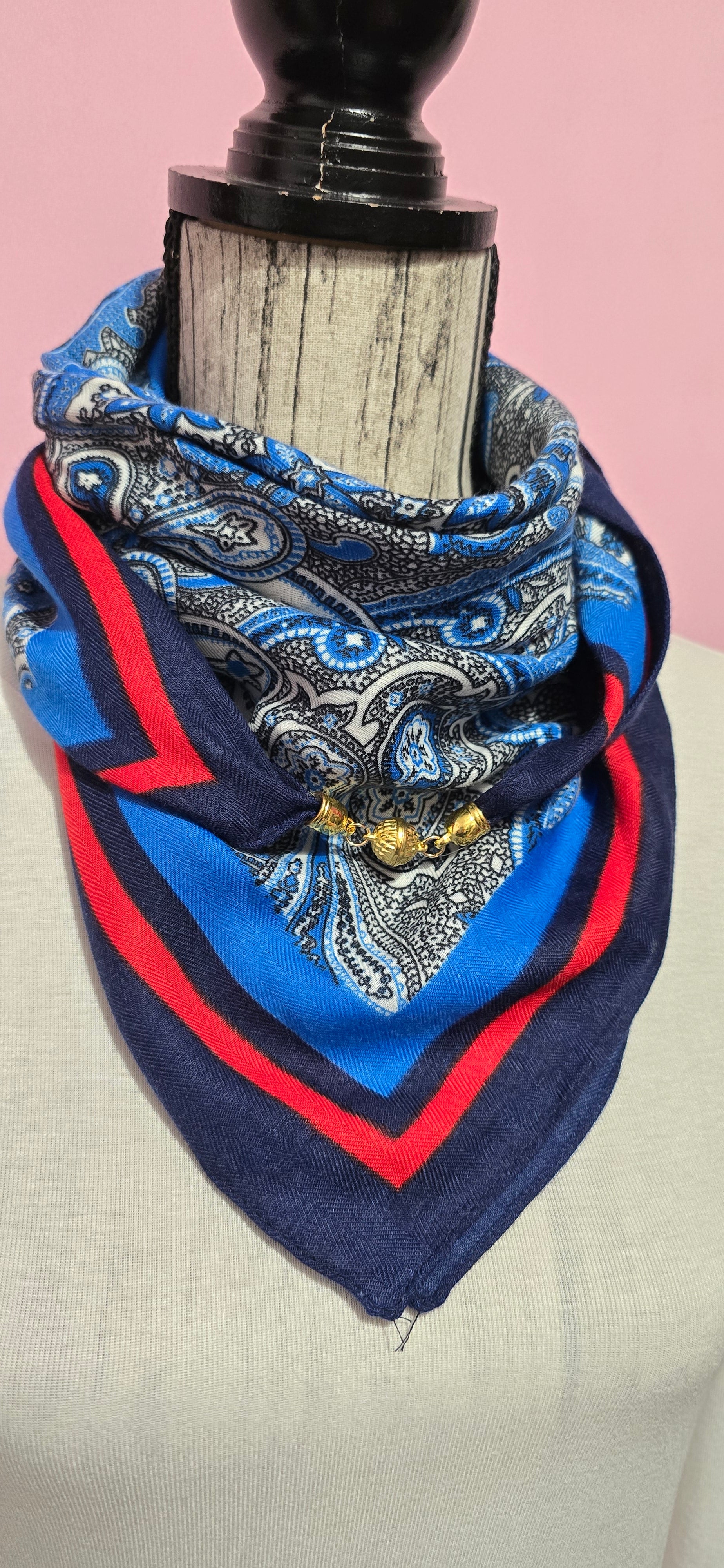 Elegante fazzoletto da collo con ciondolo calamitato, perfetto per aggiungere un tocco di stile al tuo look. Il design lo rende versatile e sofisticato, adatto sia a outfit casual che più formali. La chiusura magnetica garantisce praticità e sicurezza, permettendoti di indossarlo senza preoccupazioni. Un accessorio must-have per chi ama i dettagli ricercati e le stampe caratteristiche. Ideale per completare qualsiasi abbinamento con eleganza e personalità.