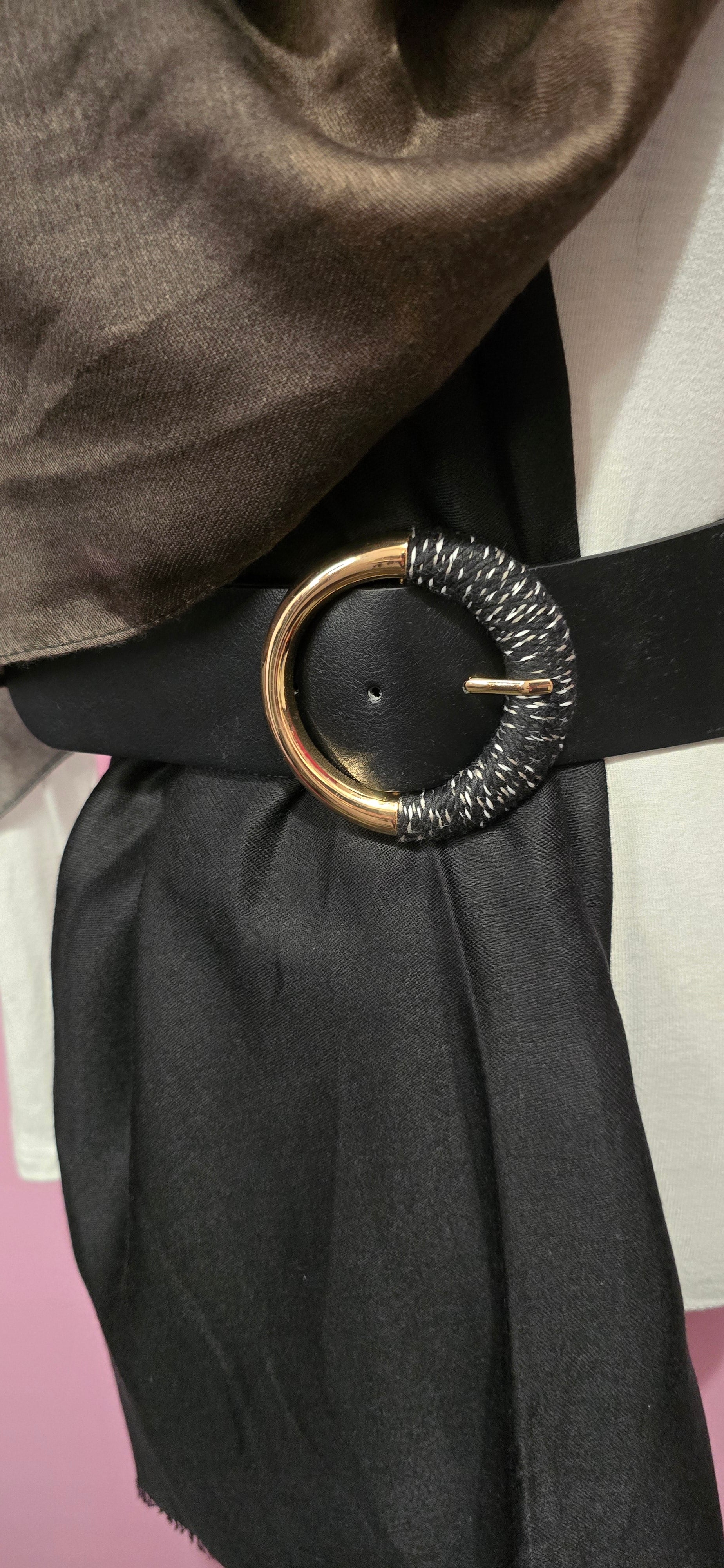 Cintura realizzata in eco nera sostenibile, perfetta per completare qualsiasi outfit con stile. Caratterizzata da una maxi fibbia elastica che garantisce comfort e praticità, si adatta facilmente a diverse taglie. Il design versatile la rende ideale per occasioni casual e più formali, mentre il materiale ecologico rispecchia un impegno verso la moda consapevole. Un accessorio essenziale che unisce estetica e responsabilità ambientale.