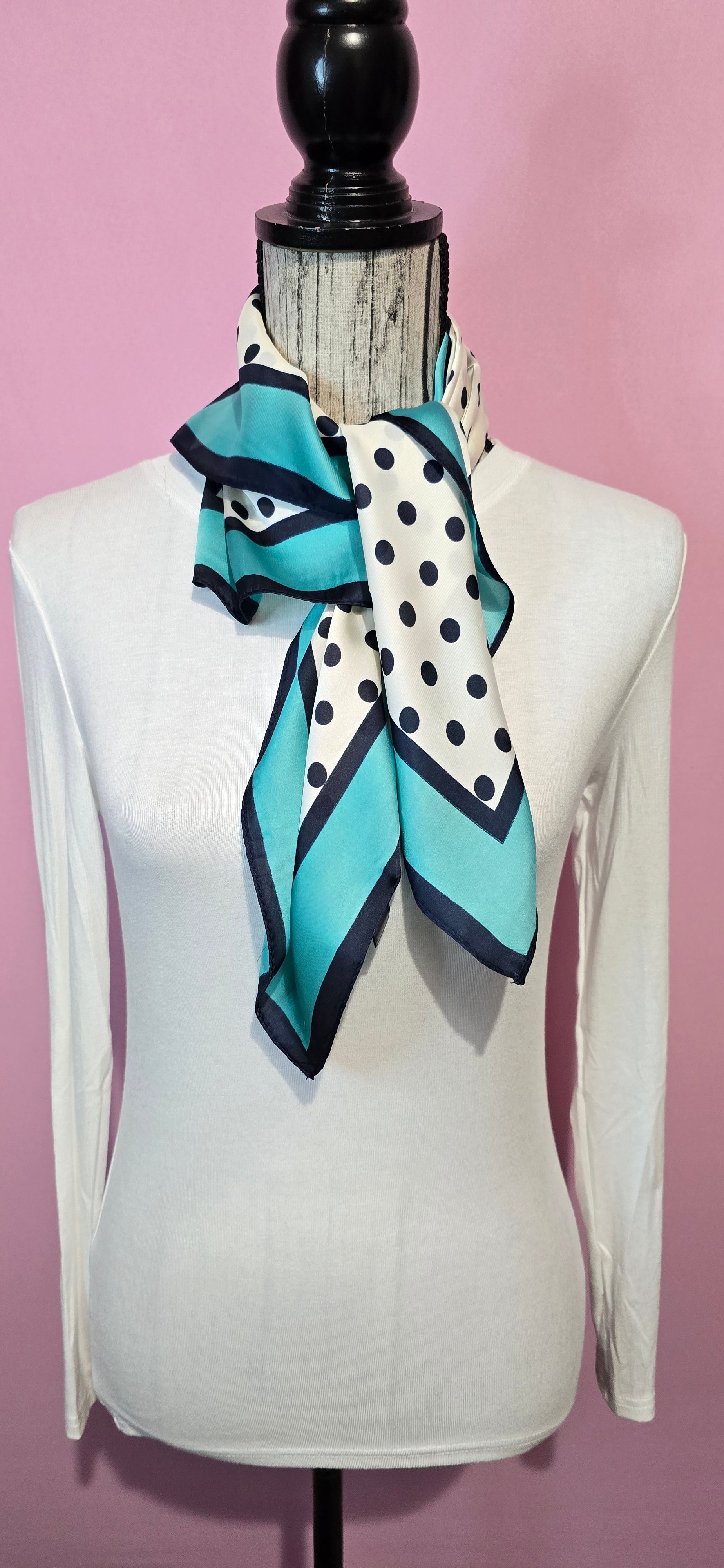 Elegante fazzoletto da collo con motivo a pois blu, perfetto per aggiungere un tocco di stile sofisticato a qualsiasi outfit. Realizzato con materiali di qualità, questo accessorio versatile si adatta facilmente a look casual o più formali. Ideale per chi desidera un dettaglio raffinato che catturi l'attenzione senza risultare eccessivo. Un must-have nel guardaroba di chi apprezza gli accessori classici con un twist contemporaneo.
