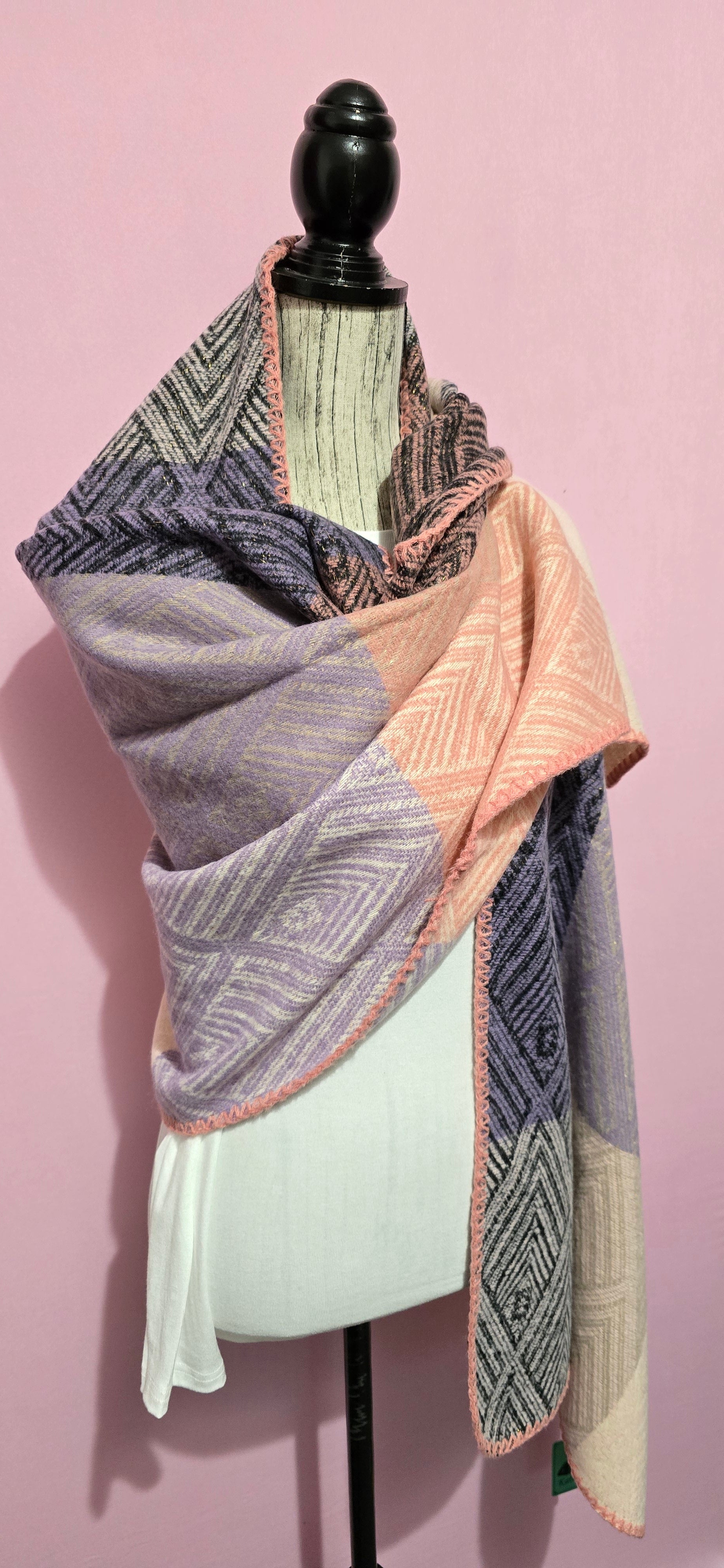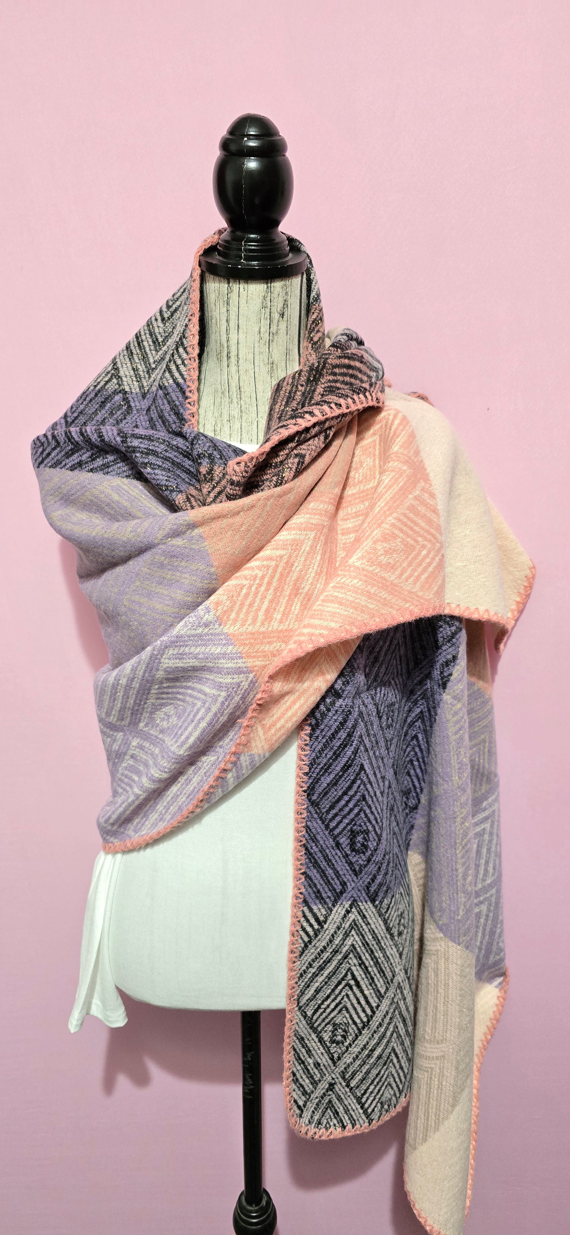 Questa bella stola presenta una fantastica fantasia geometrica con colori alternati di rosa grigio e panna, rendendola una scelta elegante e versatile per ogni occasione. Realizzata con materiali di qualità, è perfetta per essere indossata in molti modi per un tocco di stile in più al tuo look.