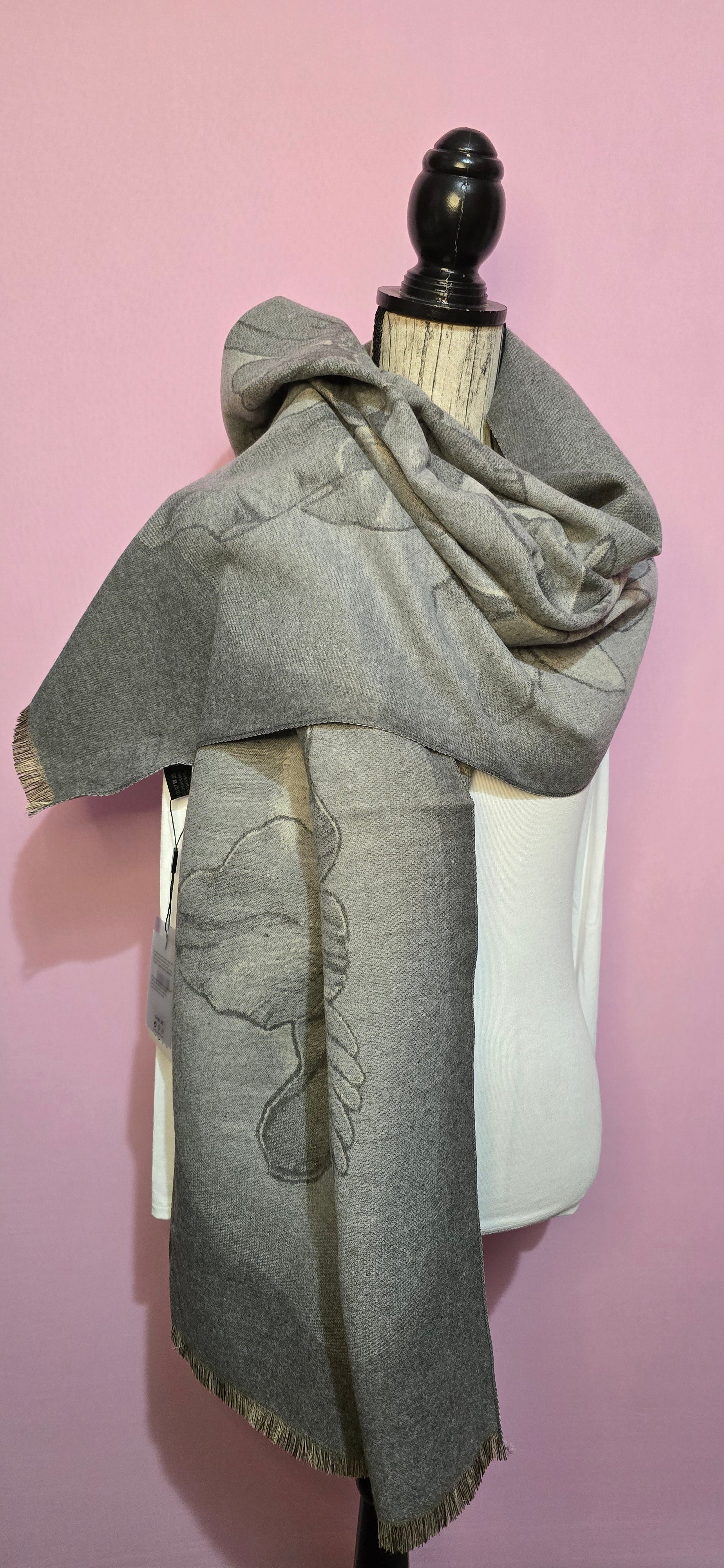 Stola Ninfea in viscosa rasata, un capo elegante e fluido che cattura la luce con il suo delicato motivo floreale tono su tono. La palette grigia sofisticata si adatta perfettamente a qualsiasi occasione, dal giorno alla sera. La lunghezza maxi regala movimento e grazia, mentre il tessuto morbido e drappeggiante assicura comfort e una silhouette raffinata. Un pezzo versatile che diventa essenziale nel guardaroba di chi ricerca stile senza compromessi.