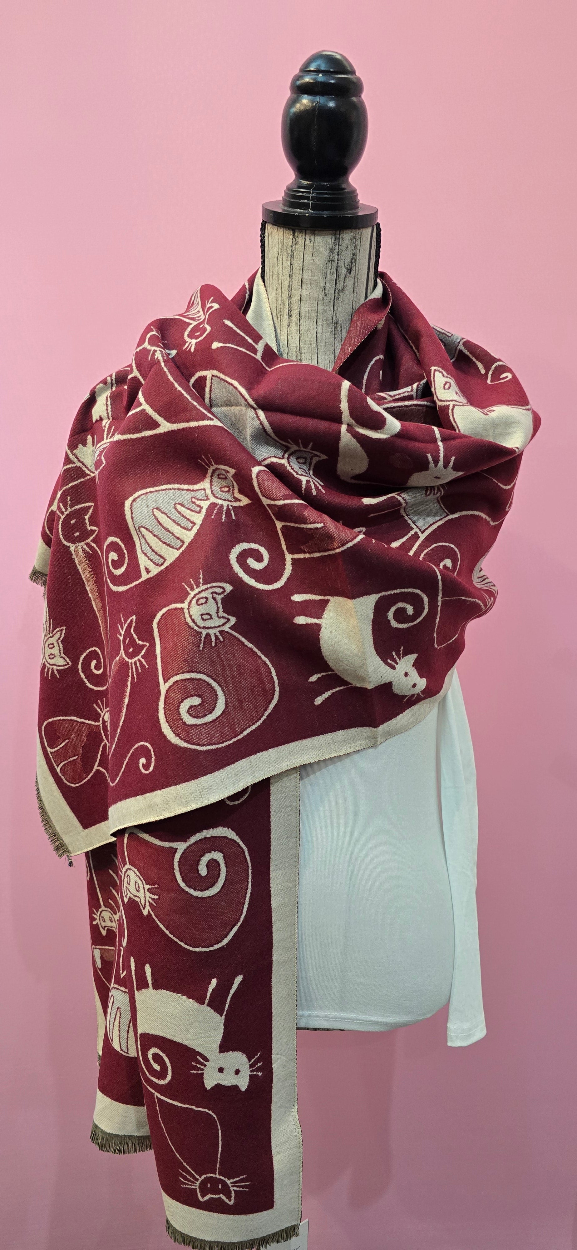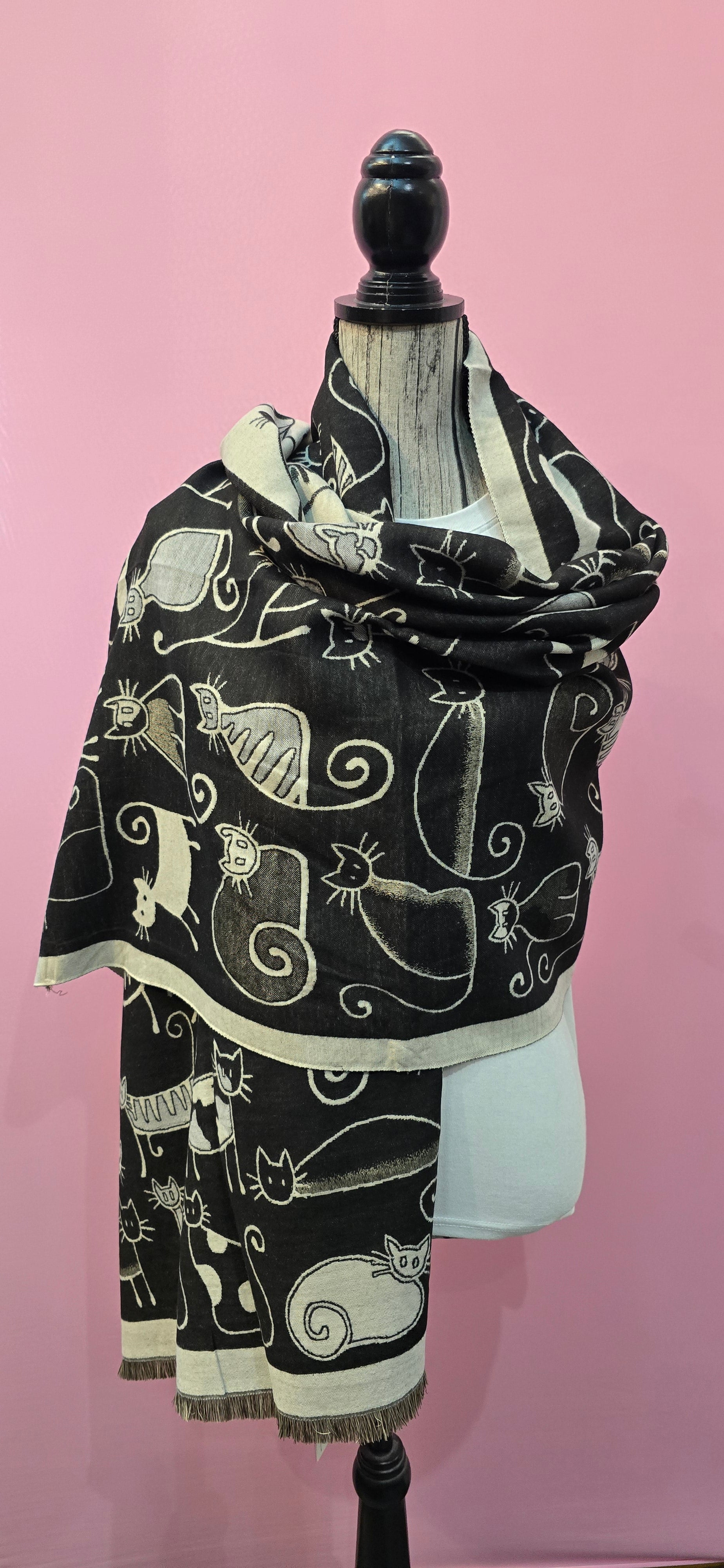 Questa stola mezza pesantezza reversibile unisce stile e comfort con la sua fantasia a gatti unica. Perfetta per aggiungere un tocco originale a qualsiasi outfit, offre la versatilità di due look in uno grazie al suo design reversibile. Ideale da indossare in diverse occasioni, garantisce calore senza appesantire. Un accessorio funzionale e raffinato per chi ama distinguersi con dolcezza.